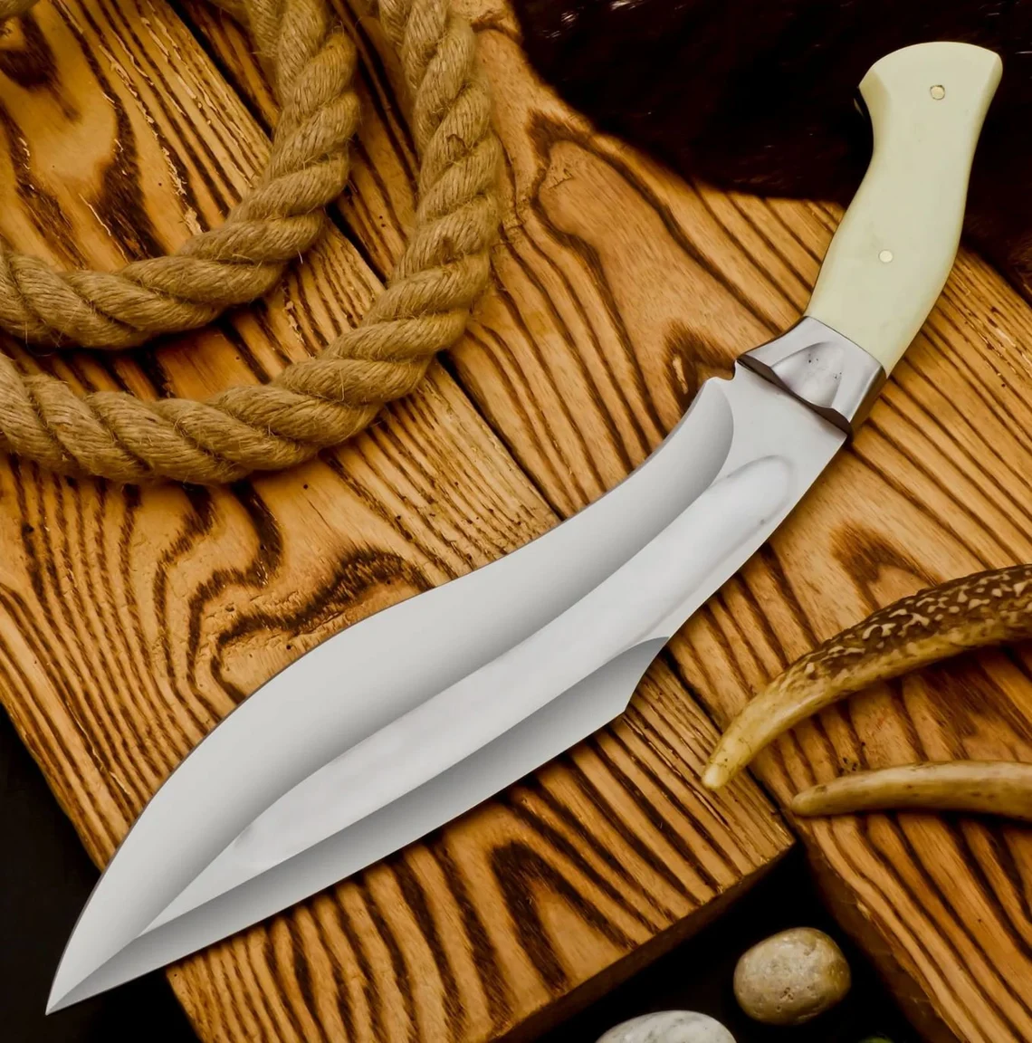 15″ Custom Handmade D-2 TOOL Steel Camel Bone Kukri Knife Leather Sheath