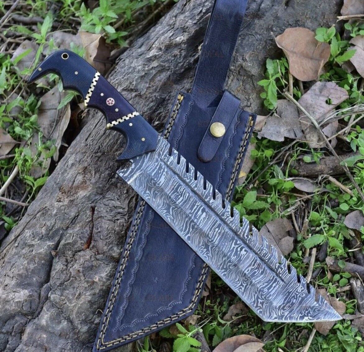 Custom HANDMADE FORGED DAMASCUS STEEL HUNTING Skinner Fix Blade Tracker KNIFE