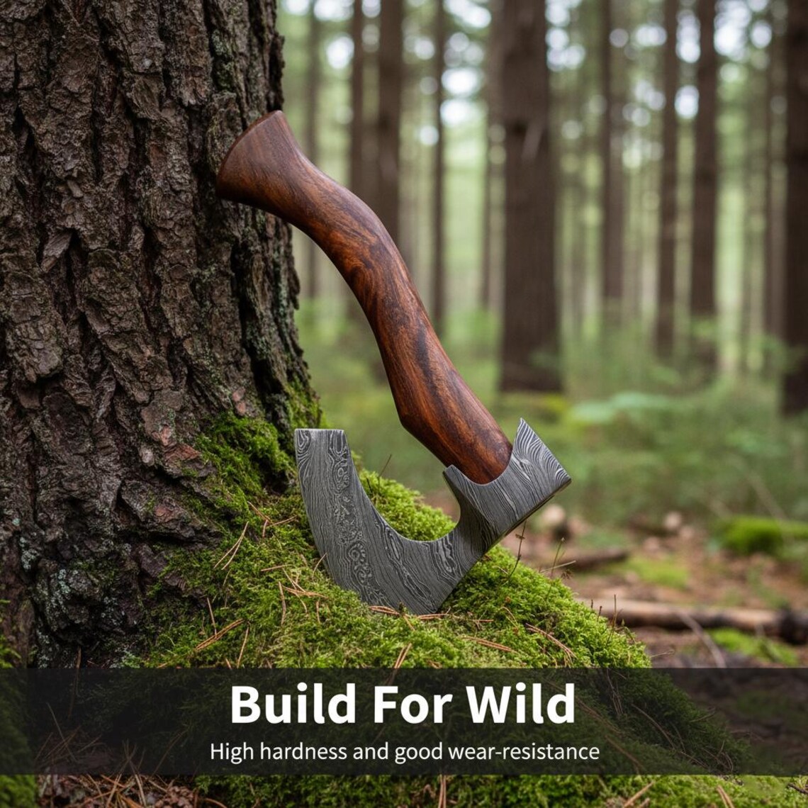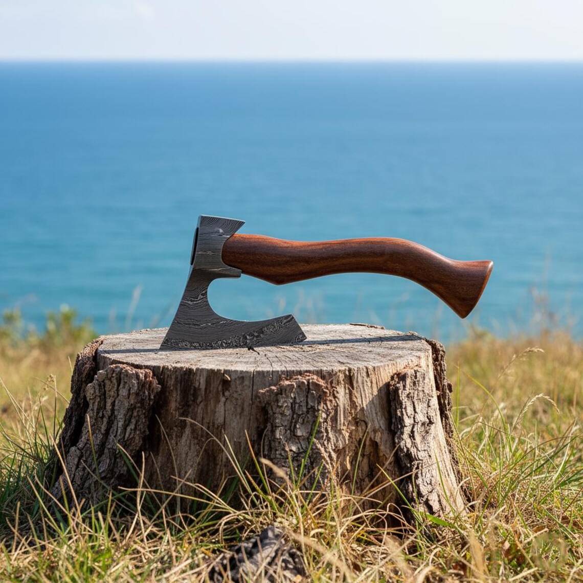 Be the first to review “Hand-Forged Damascus Viking Axe, Curved Rosewood Handle with Leather Sheath”