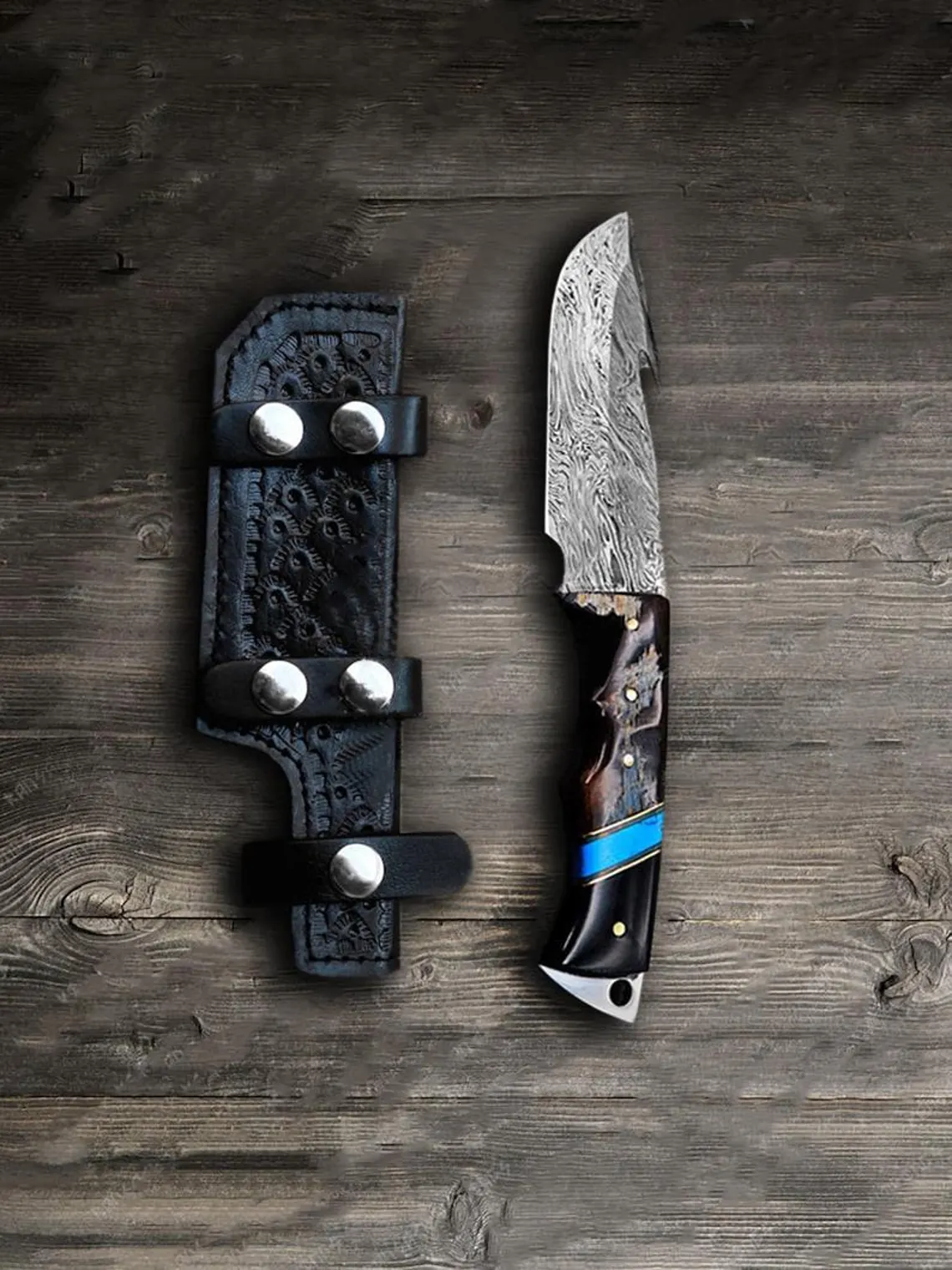 The ergonomic handle is carefully crafted for comfort and control, while the full tang fixed blade design ensures long-lasting strength. Each knife comes with a hand-stitched leather sheath for safe carry and stylish protection.